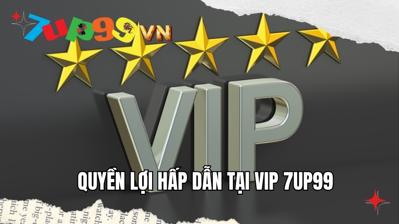 7UP99 chia hệ thống VIP thành nhiều cấp độ, từ VIP 1 đến VIP 10, mỗi cấp tượng trưng cho vị thế và quyền lợi khác nhau. Người chơi mới khi đăng ký tài khoản sẽ bắt đầu từ VIP 0 và có thể nâng cấp bằng cách tích lũy doanh thu cược thực tế.